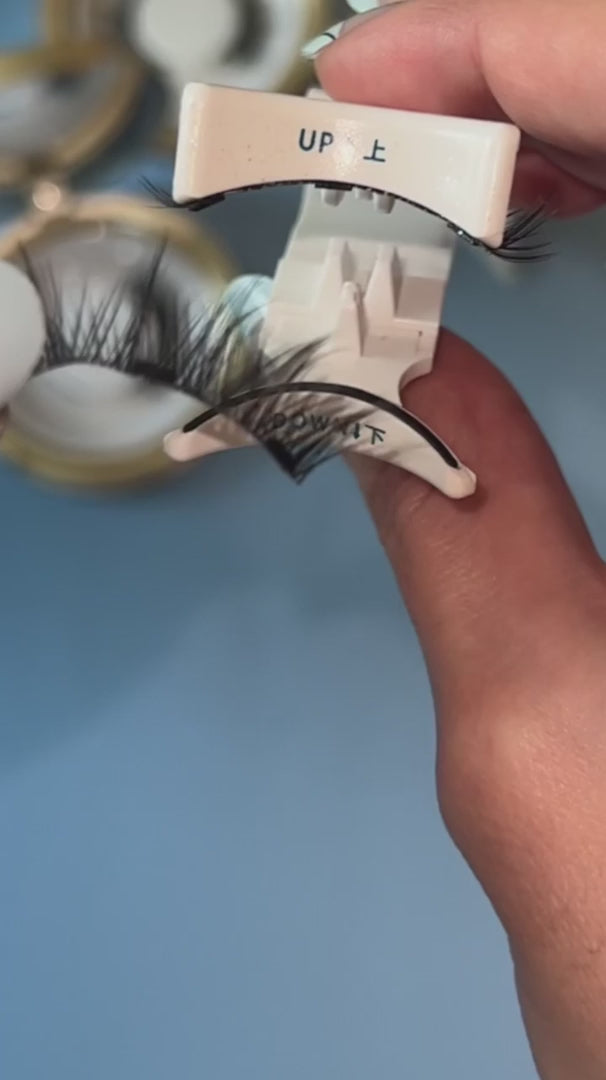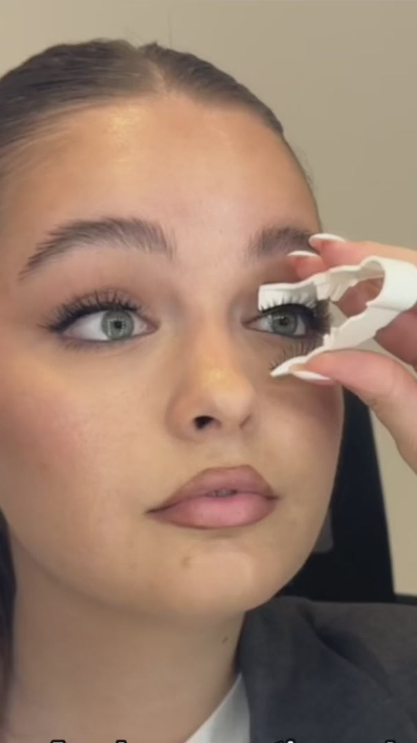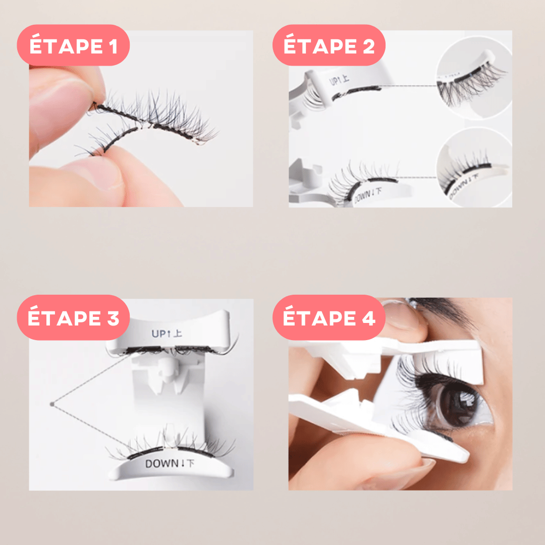 Alignez les faux cils sur vos cils naturels, puis fixez-les simplement à l'aide des aimants intégrés. Aucune colle nécessaire, la pose se fait en quelques secondes !